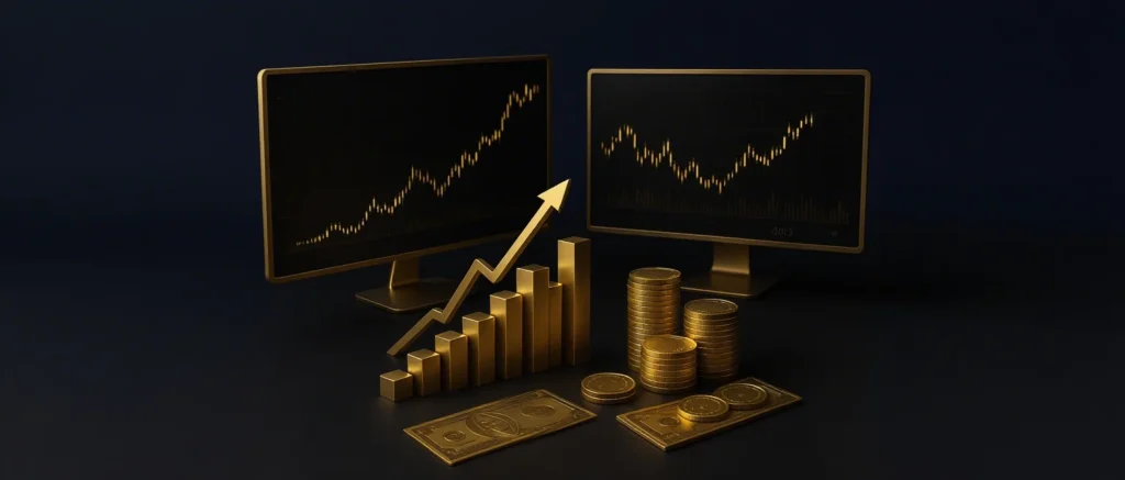 Quando você compra uma ação, por exemplo, está adquirindo uma parte de uma empresa. Se essa empresa cresce e gera lucros, o valor da ação tende a subir, e você pode ganhar de duas formas: